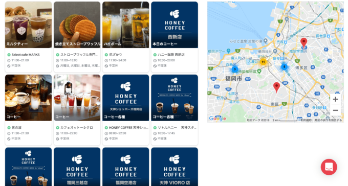 ・ハニー珈琲(天神ショッパーズ・天神VIORO・福岡三越・博多駅前・大名・天神スタンド・福岡空港・西新・室見駅)