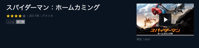 また、上の3作品(『アイアンマン』〜『スパイダーマン:ホームカミング』)は旧作映画として他の動画配信サービスで見放題作品として配信されていたりするし、されていなかったとしても、レンタル代はそんなにかかりません。