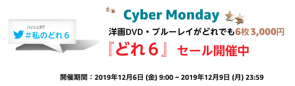 【どれ6】アマゾンサイバーマンデーのセールでDVD&ブルーレイが6枚3000円!映画のディスクを安く買う方法
