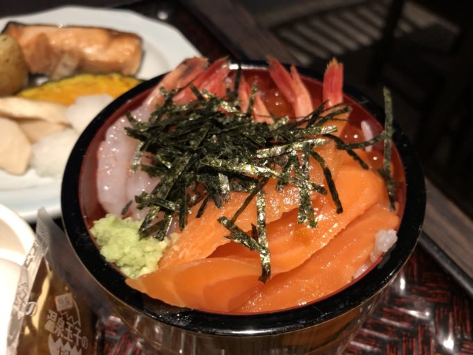 評判通りいくらは取り放題。鮭も甘海老も取り放題の豪華海鮮丼が、食べ放題。