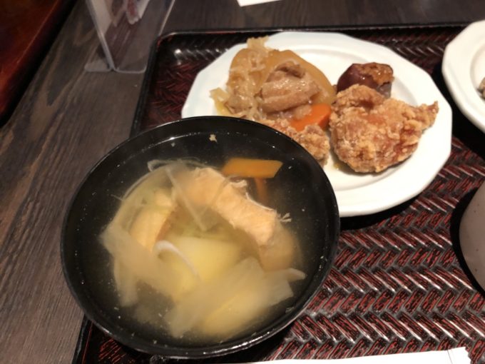 そして、他のメニューもめちゃくちゃうまい。この鮭の三平汁(うろ覚えだけど多分そう)とかもめちゃくちゃうまい。普通に店で食べたらめちゃくちゃ高そうな、具材からして美味しいグルメが食べ放題。