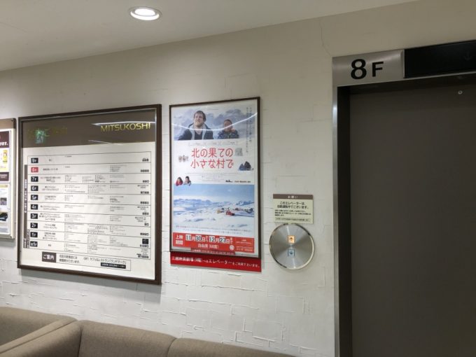 映画館は9階にある。注意点は、エスカレーターでは行けないということ。エレベーターじゃないと行けないので、エスカレーターで8階まで移動してもエレベーターに乗らなければなりません。地下からエレベーターに乗りましょう。