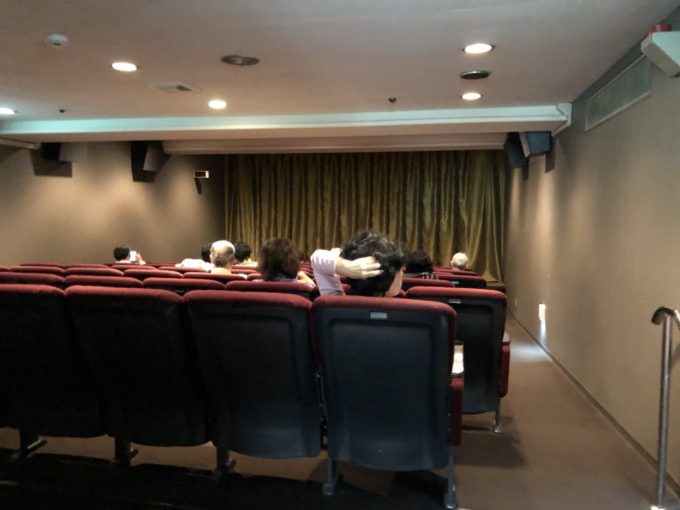 百貨店の劇場なので、レトロです。自由席で、開場時には6割がた埋まるような、昔ながらの劇場という感じだった。ただ、三越のような高級感が漂うかというと微妙。座り心地も普通で、スクリーンサイズもそこまで大きくない。前の席に座っている人の頭部がスクリーンにちょっとかかりがちなので、前でちょうどいいと思う。