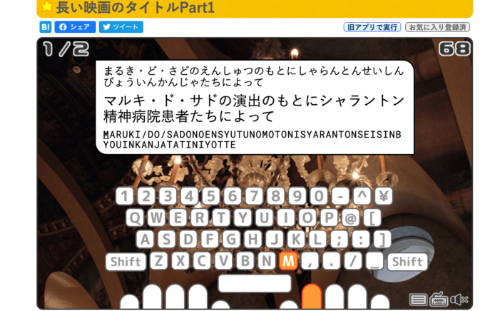 myTypingでゲーム作ったんで、この映画のタイトルを覚えたい・タイピングの練習をしてみたい方はぜひともチェックしてみてください。「・」と「=」が苦手な人には結構いい練習になりますよ。