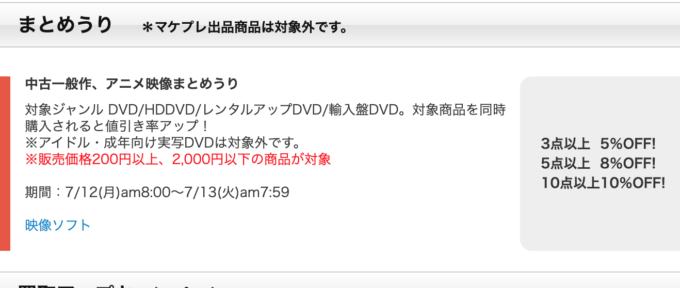 この記事を書いた月曜日にはちょうどDVDのまとめ売りセールが行われていた。