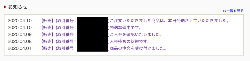 2020年4月の頃は先述の通り出荷準備に1週間くらいかかっていたが、そこまで時間かかってなかった。
