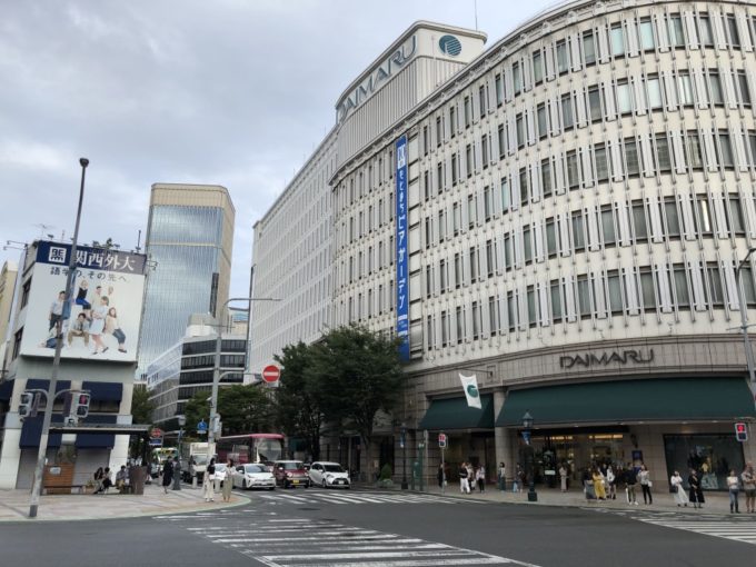 これは元町の商店街から大丸を撮った写真。元町大丸と関西外大の看板の間に、元町大丸よりも高そうなビルが見えると思う。これが神戸の朝日ビルだ。この建物に向かって歩けば着く。