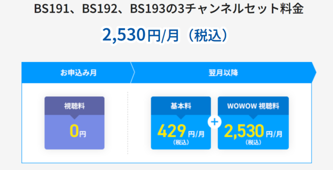 ・翌月からの月額視聴料:2530円(税込)